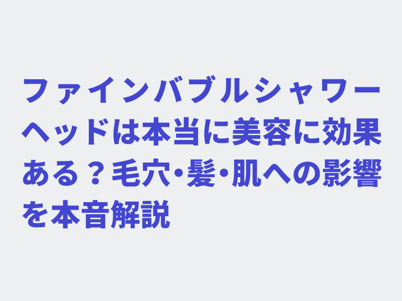 結論:ファインバブルは“補助的美容”として優秀