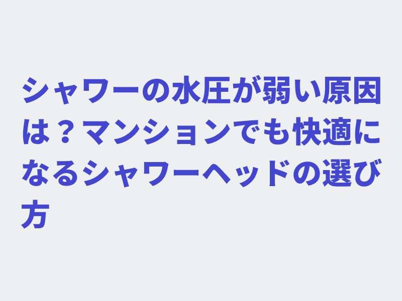 シャワーの水圧問題は“構造的な理由”がほとんどです。
